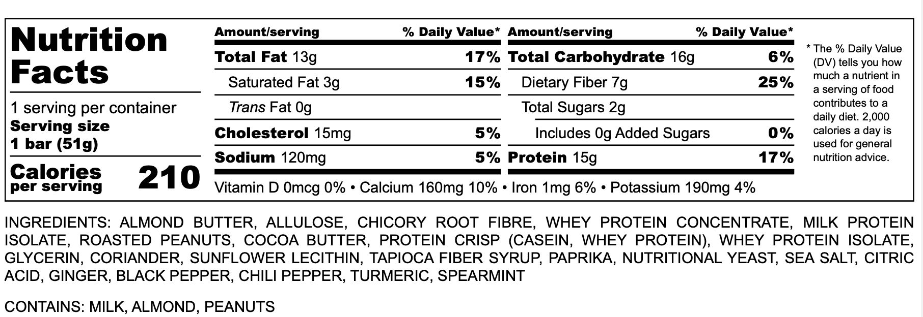 Crunchy roasted peanuts with a kick of warm Indian spices: bold, savory, and satisfying. 15g protein, 7g fiber, 0g added sugar. A street market classic reinvented as a metabolic-friendly protein bar.